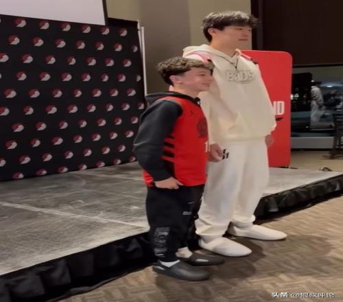 杨瀚森先是满足了这个小球迷的合照,随后这个男孩仿佛是在手机上拿出与杨瀚森的合照给杨瀚森看,两人再次完成互动。