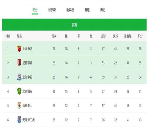 在成都蓉城、上海申花等对手尚未完善的前提下,海港队目前在积分榜的位置。