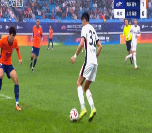 青岛海牛利用海港后卫失误扳平比分。