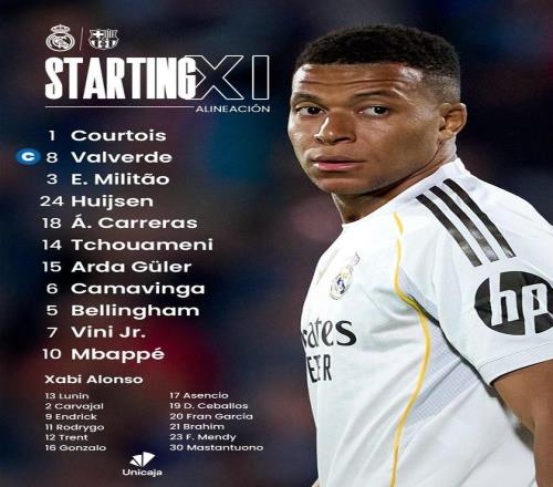 25岁15天,皇马派出了近20个赛季国家德比中最年轻首发阵容