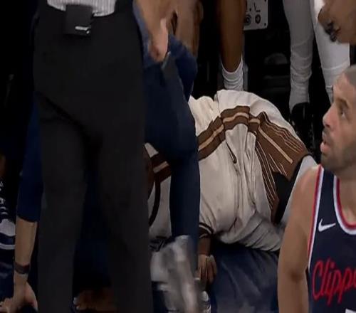 快船后场核心哈登因为右肩酸疼缺席,他来到现场躺着观看比赛。