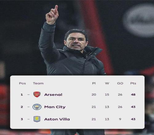 英超争冠变天!曼城维拉同时掉链子阿森纳有望8分领跑