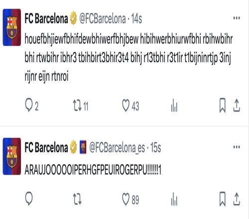 阿劳霍绝杀后,巴萨官方社媒激动到胡言乱语 -